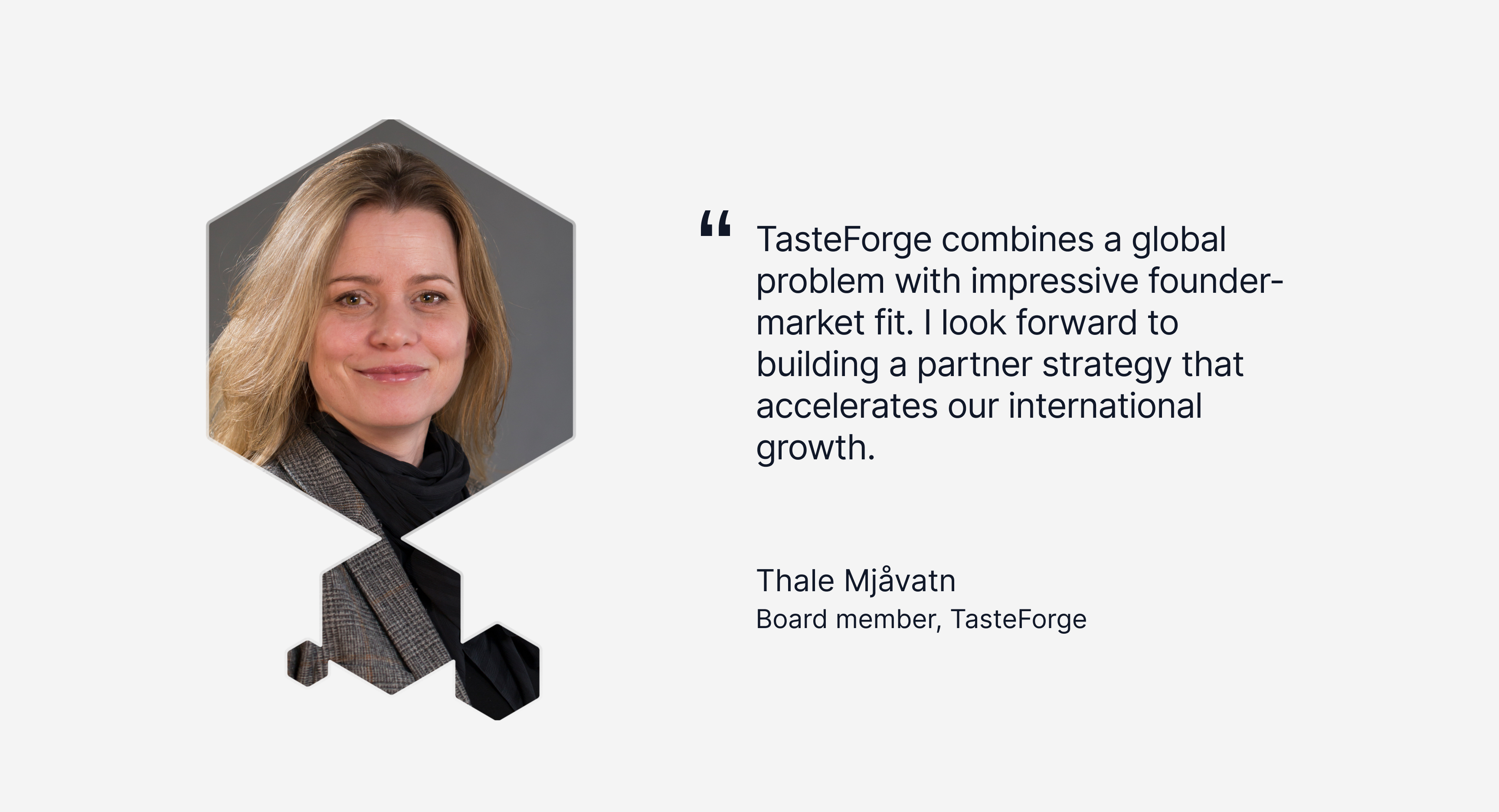 "TasteForge combines a global problem with impressive founder-market fit. I look forward to building a partner strategy that accelerates our international growth."